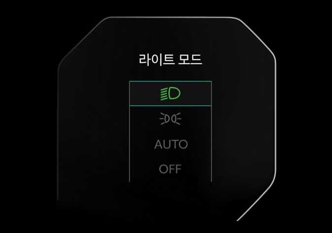 전조등 스위치 작동 시 현재 모드를 표시합니다.