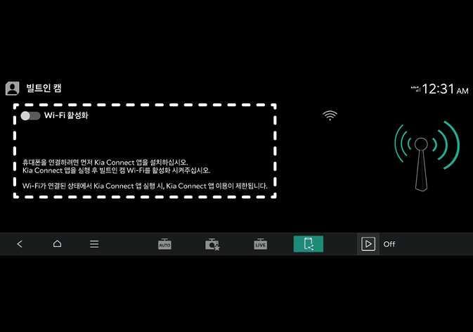 Kia App에서 빌트인 캠 연결하기를 누르시고, Wi-Fi 연결을 선택하십시오.