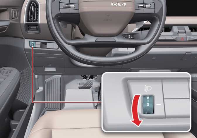 조절 장치의 숫자가 높을 수록 전조등 각도는 아래를 향하도록 되어 있습니다.