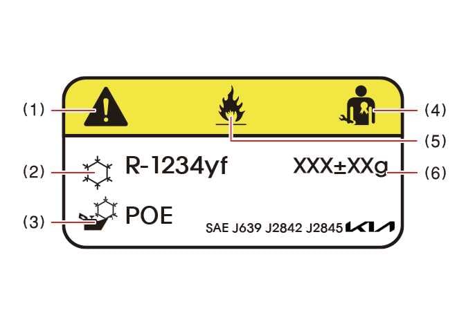 차량의 실제 에어컨 냉매 라벨은 그림과 다를 수 있습니다.
