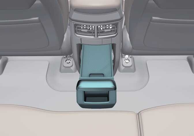 센터 콘솔 하단에 위치한 레버를 당기면 사물함이 열리며 작은 물건 등을 보관하거나 물건을 올려놓는 테이블로 사용할 수 있습니다.