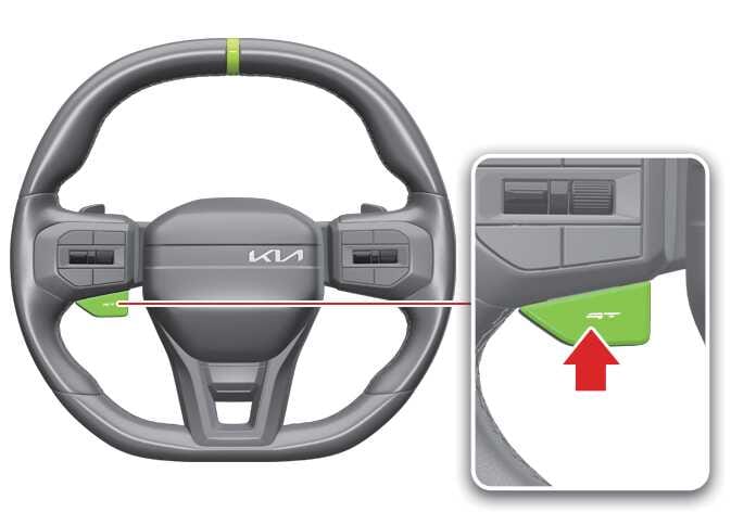 스티어링 휠에 위치한 GT 버튼을 눌러 GT 모드 또는 MY DRIVE 모드로 변경하십시오. (사양 적용 시)