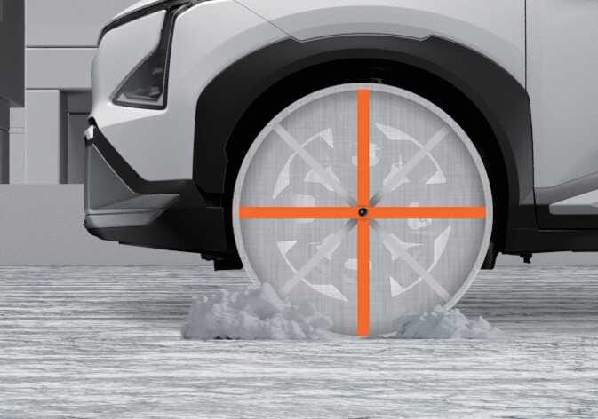 이 차량은 앞바퀴가 구동되는 전륜 구동 차량입니다. 따라서 타이어 체인을 장착할 경우 반드시 앞바퀴에 장착하십시오.