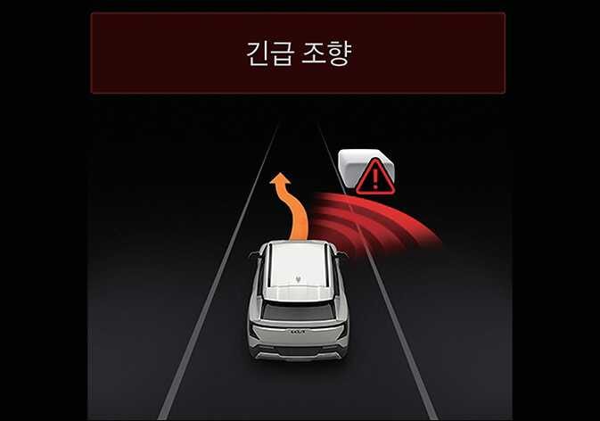 긴급 조향으로 추가 사고가 예상될 경우 충돌 경고로만 위험을 알립니다.