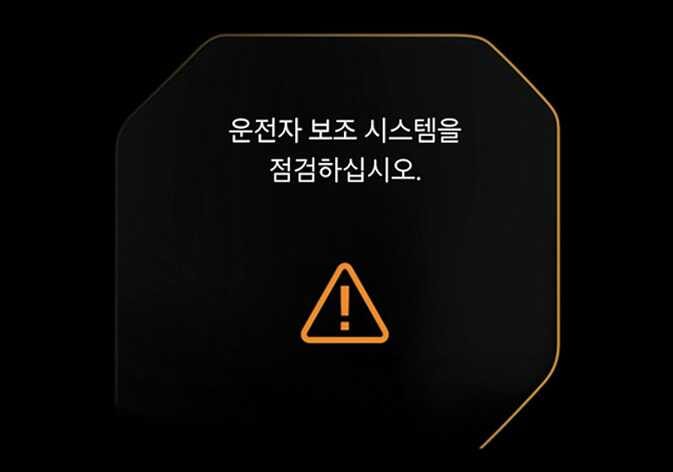 전방 충돌방지 보조에 이상이 있으면 클러스터 등에 경고문이 표시되고 통합 경고등
