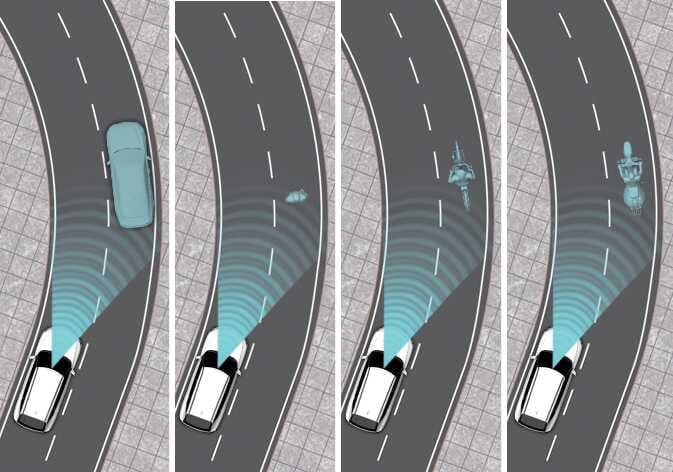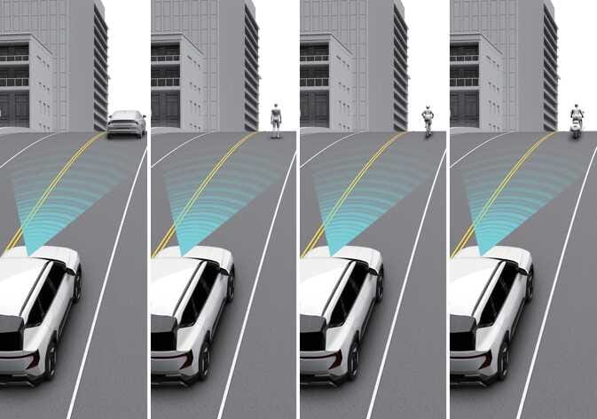 또한 선행 차량, 이륜차, 보행자 및 자전거 탑승자를 갑자기 인식하여 속도가 빠르게 감속할 수 있습니다.