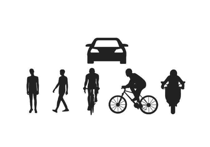 다수의 보행자 및 자전거 탑승자가 모여 있을 경우