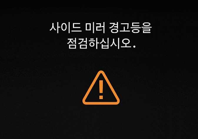 실외 미러(사이드 미러) 경고등에 이상이 있으면 클러스터에 경고문이 일정 시간 동안 표시되며 통합 경고등