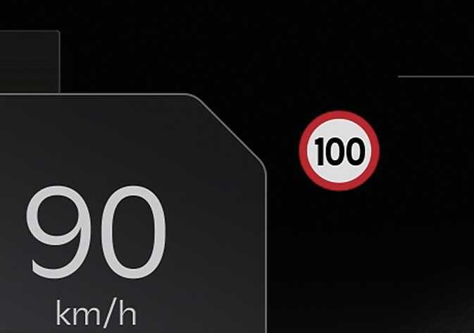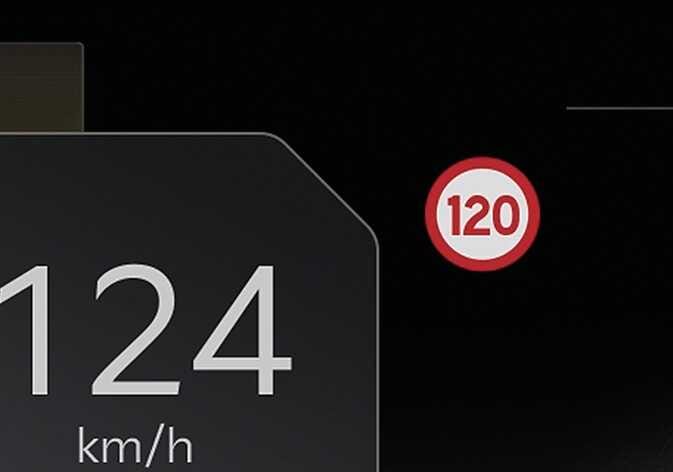 표시된 제한속도보다 높은 속도로 주행할 경우 표지판이 빨간색으로 켜집니다.
