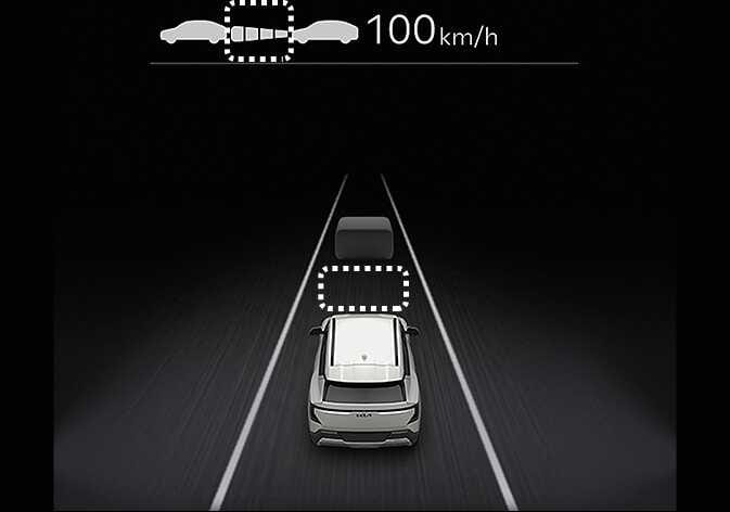 운전 스타일 연동이 작동하면 클러스터에 설정된 차간거리 단계와 목표 차간거리가 흰색으로 표시되고, 운전자의 주행 성향이 반영된 차간거리 단계 및 목표 차간거리가 표시됩니다.
