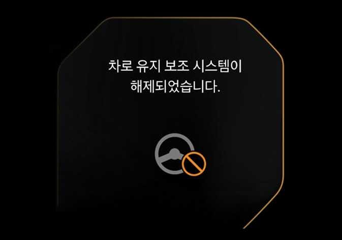 주행 상황에 따라 핸즈오프 경고문이 늦게 표시될 수 있습니다. 항상 스티어링 휠을 잡고 주행하십시오.