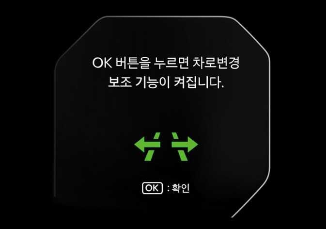 클러스터에 고속도로 차로변경 보조 기능의 사용 여부를 묻는 안내문이 표시될 때 'OK'를 누르십시오.