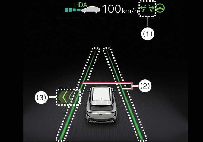 방향지시등 스위치를 (3)에 두면 고속도로 차로변경 보조 기능을 수행합니다. 이후에 방향지시등 스위치를 중앙(1)에 놓으면 차선을 밟기 전에는 취소되지만 차선을 밟은 이후에는 취소되지 않고 차로변경을 완료하고 방향지시등이 꺼집니다.