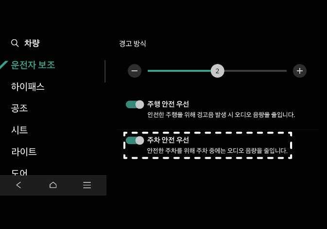 경고 방식을 변경하면 다른 운전자 보조 시스템의 경고 방식도 같이 변경될 수 있습니다. 고려하여 변경하십시오.