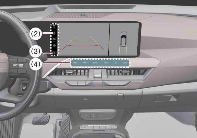 R(후진)단에서는 인포테인먼트 시스템 작동 버튼(4)을 눌러도 영상이 해제되지 않습니다.