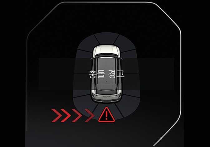 실외 미러(사이드 미러) 경고등, 경고문, 경고음 및 스티어링 휠 진동을 통해 충돌 경고를 알립니다.