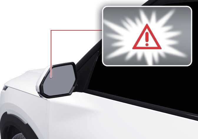 실외 미러(사이드 미러) 경고등, 경고문, 경고음 및 스티어링 휠 진동을 통해 충돌 경고를 알립니다.