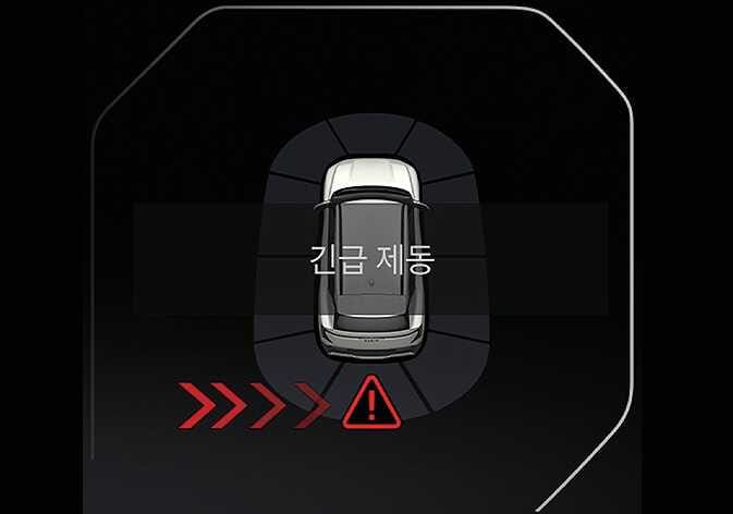 긴급 제동이 작동하면 후측방에서 접근하는 차량과의 충돌을 방지하기 위해 제동 제어를 도와줍니다.