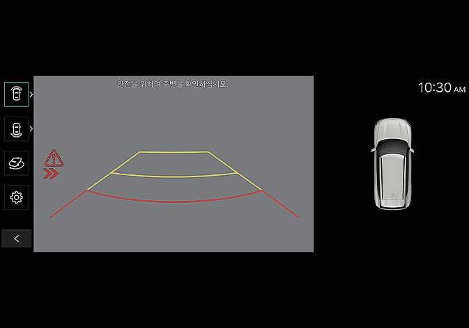 인포테인먼트 시스템 화면의 후방 영상에도 경고가 표시됩니다.
