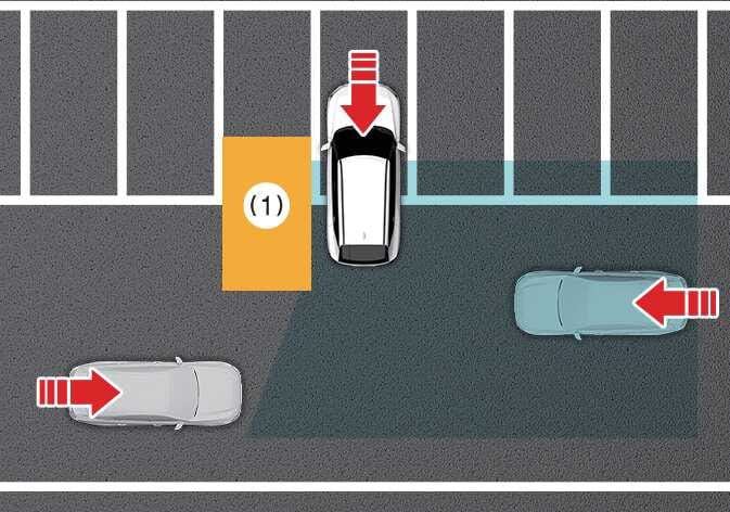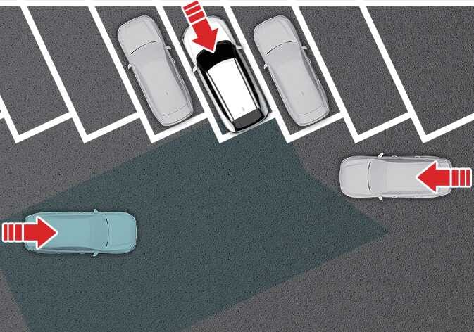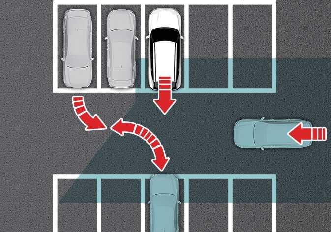 주변에 차량이나 구조물이 있으면 후측방에서 접근하는 차량을 인식하지 못해 후방 교차 충돌방지 보조가 경고하지 않거나 제동을 도와주지 않을 수 있습니다.