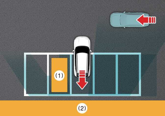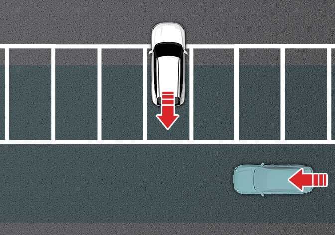 OOV055069후진 주차를 할 경우 주차공간 후측방 영역에서 주행하는 차량을 인식하면 후방 교차 충돌방지 보조가 작동하여 불필요하게 경고하거나 제동할 수 있습니다.