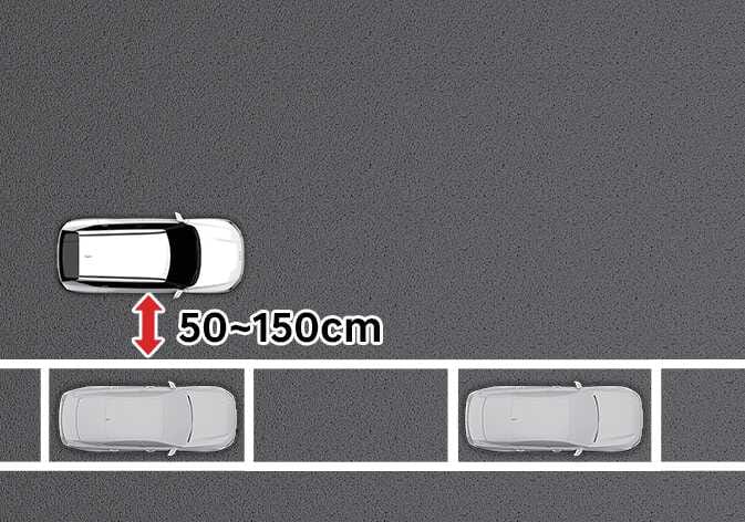 주차공간과 약 1 m의 일정 간격을 유지하면서 직진으로 서행하십시오. 주차선 또는 주차된 차량의 옆 또는 앞뒤 공간을 감지하여 주차공간을 탐색합니다.
