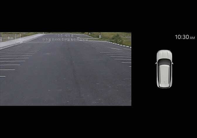 스마트 주차 기능 작동 중에 버튼을 놓으면 차량이 멈추고 제어가 일시적으로 중지합니다. 다시 버튼을 누르면 기능이 작동합니다.