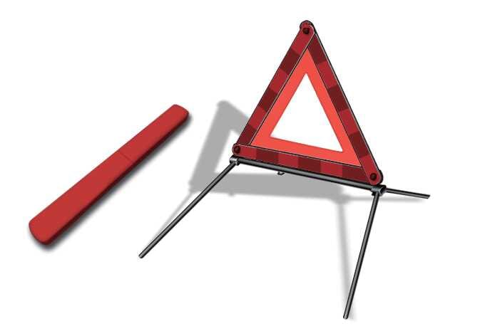 케이스에서 안전삼각대(고장 자동차 정지표지판)를 꺼내 좌우 날개를 올려 삼각형으로 맞추어 서로 교차되게 연결홈에 고정하십시오.