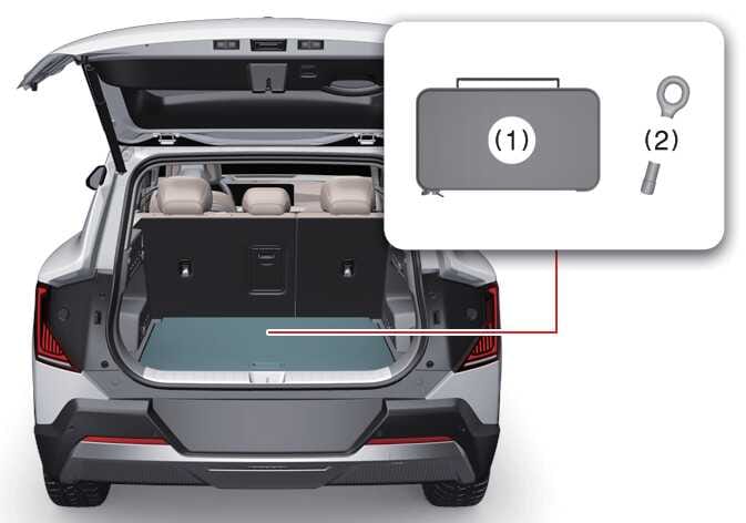 타이어 임시 수리 장치 가방 내에 있는 견인 후크를 준비하십시오.