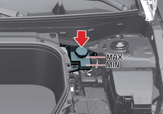 브레이크액 탱크의 액량이 최대선(MAX)보다 초과되었다면 운전 도중 브레이크액이 흘러 넘쳐서 주변 부품의 손상을 가져올 수 있으므로 브레이크액 보충 시 브레이크액량이 최대선(MAX)을 초과하지 않게 주의하십시오.