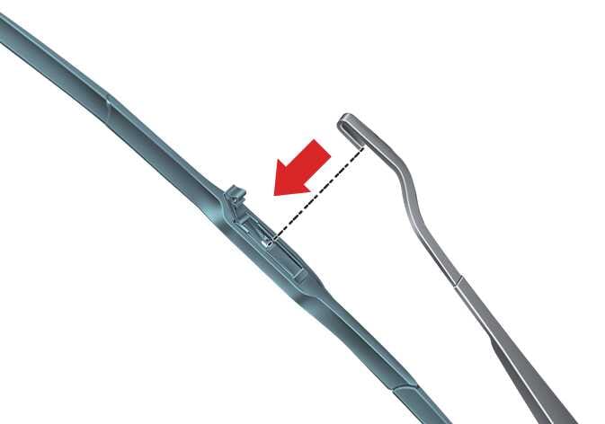 와이퍼 블레이드를 분리할 때 와이퍼 암을 뒤쪽으로 과도하게 힘을 주어 당기면 연결 부위가 파손될 우려가 있으므로 주의하십시오.