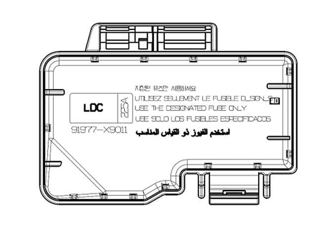 퓨즈의 용량 및 명칭은 차량에 따라 다를 수 있으므로 퓨즈/릴레이 박스 커버 안쪽에 부착되어 있는 퓨즈 라벨을 참고하십시오.
