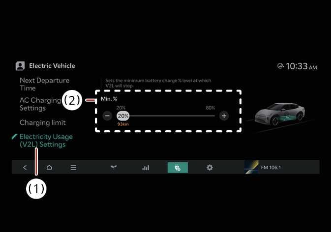 Bekijk diverse informatie over de V2L in het infotainmentsysteem wanneer u de V2L gebruikt.