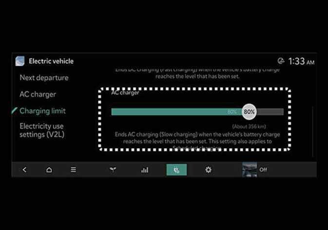 Het doellaadniveau van de batterij kan worden geselecteerd wanneer er met een AC-lader of DC-lader wordt geladen.