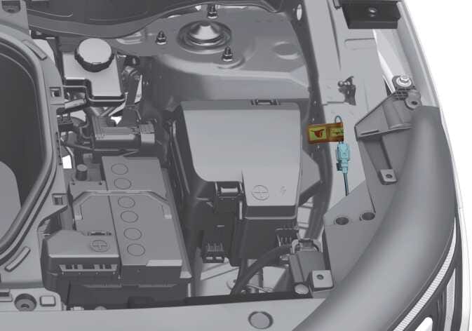 De blokkeeraansluiting in de motorruimte is veiligheidsmechanisme dat de hoogspanning van de batterij uitschakelt. Het dient voor inspecties in een professionele werkplaats. Kia raadt aan om een officiële Kia-dealer/servicepartner te bezoeken.