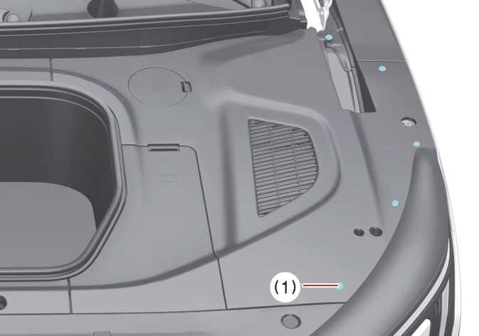 ), open de motorkap en verwijder de vijf vaste bevestigingsmiddelen (1) op de afdekking van de motorruimte met een plat gereedschap.