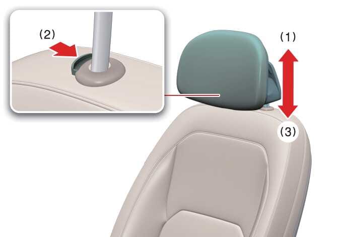 Zet de hoofdsteun lager door de ontgrendelknop (2) op de hoofdsteunhouder ingedrukt te houden.