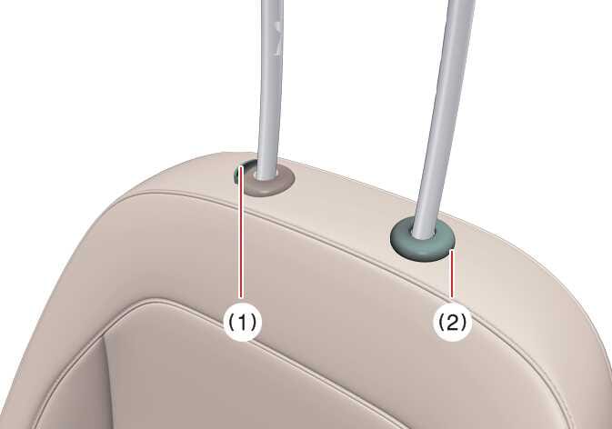 Druk op de ontgrendelknop (1) en houd deze ingedrukt. Trek de hoofdsteun zo ver mogelijk omhoog.