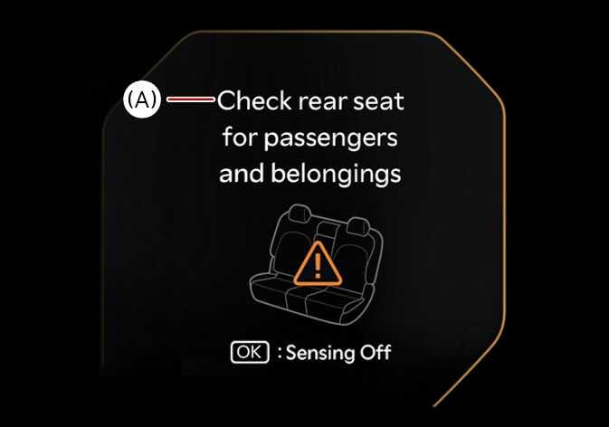 Wanneer het portier van de achterpassagier is geopend en gesloten, en u na het rijden de auto uitzet en het bestuurdersportier opent, verschijnt er een waarschuwingsbericht op het cluster.