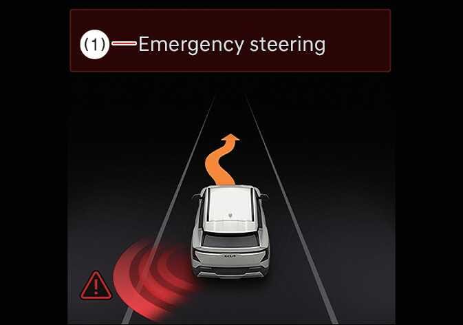 Om de bestuurder te waarschuwen dat er noodstuurhulp wordt gegeven, knippert het waarschuwingslampje noodstuurhulp (