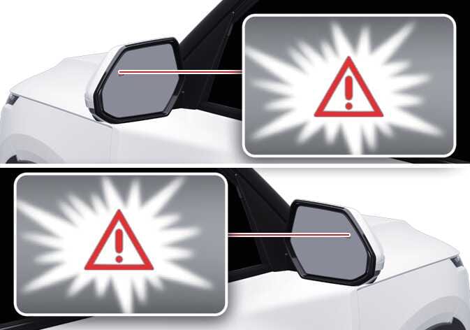 De aanrijdingswaarschuwing waarschuwt de bestuurder via het waarschuwingslampje op de buitenspiegel (zijspiegel), het head-up-display (indien aanwezig), een trilling van het stuurwiel en een hoorbare waarschuwing.