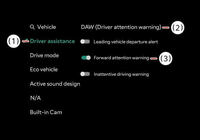 Forward Attention Warning (waarschuwing aandacht vooruit): Het waarschuwt de bestuurder wanneer zijn blik niet op de weg gericht is.