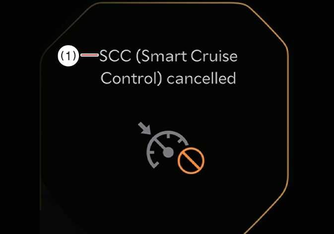 Als de Smart Cruise Control automatisch tijdelijk geannuleerd wordt, verschijnt de waarschuwingsmelding op het instrumentenpaneel en weerklinkt er een waarschuwingssignaal om de bestuurder te waarschuwen.
