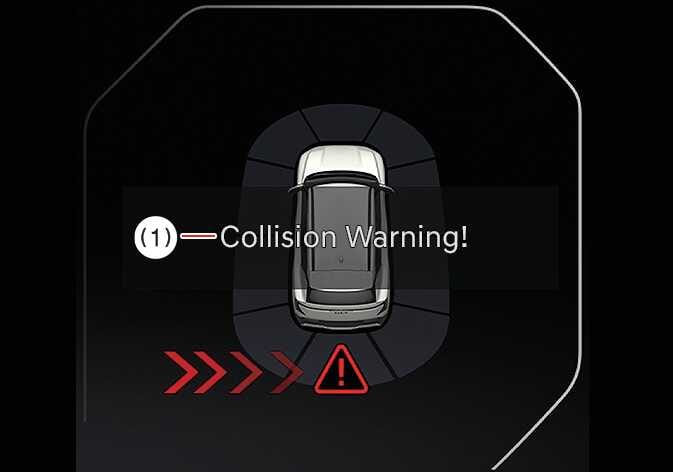 De aanrijdingswaarschuwing zal ook verschijnen op het scherm van het infotainmentsysteem.