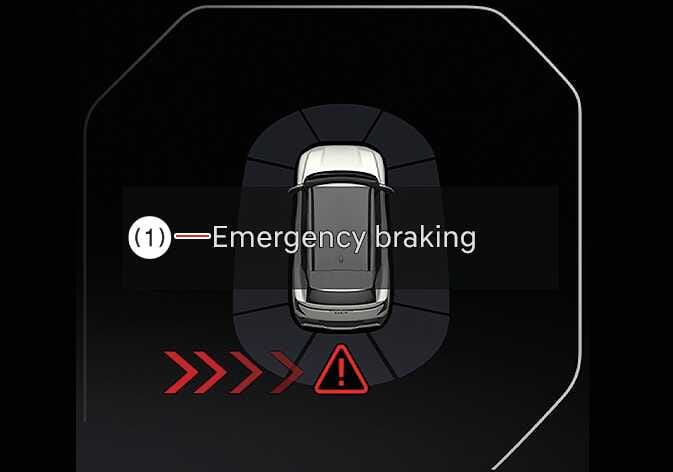 Een noodrem zal ook verschijnen op het scherm van het infotainmentsysteem.
