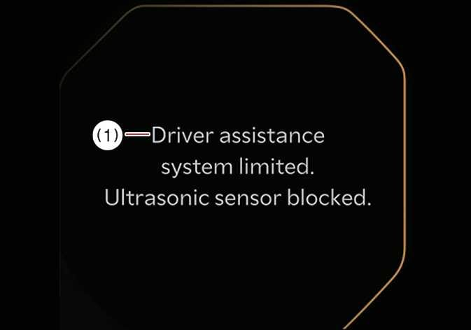 ) wordt weergegeven in de richting van het doel als een storing of ultrasoonsensor wordt geblokkeerd terwijl het Aanrijdingspreventiesysteem parkeren actief is. -