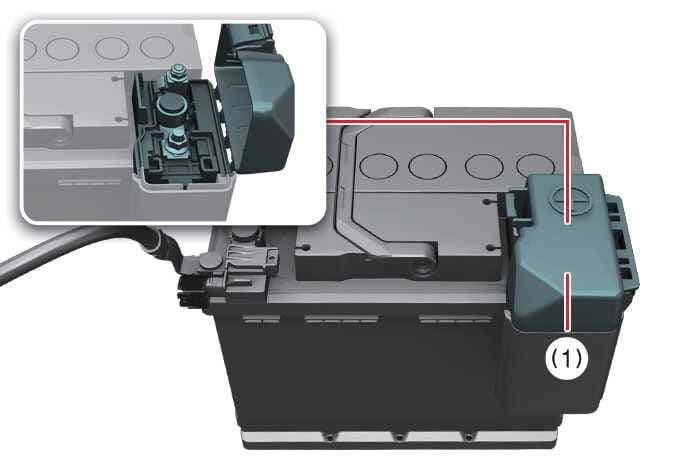 Open het deksel van de 12V-batterij (1).