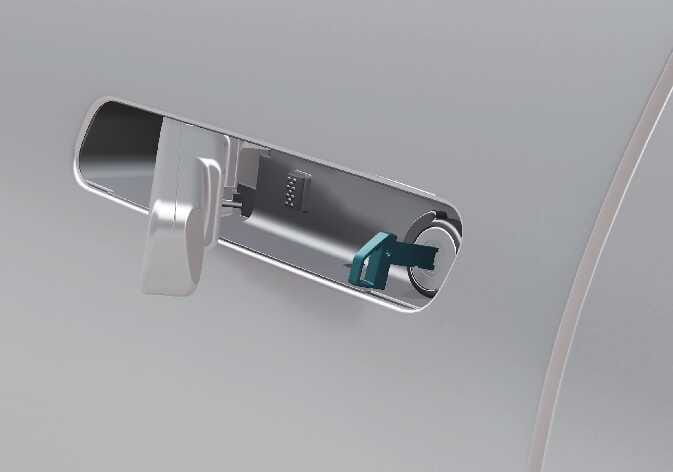 Drücken Sie auf den vorderen Teil des Türgriffs, um den hinteren Teil des Türgriffs herauszuziehen.