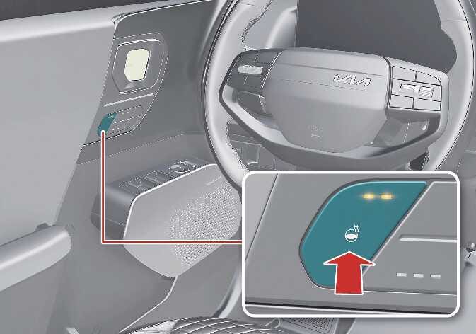 Drücken Sie die Taste für die Lenkradheizung. Wenn Sie die Taste für die Lenkradheizung drücken, leuchtet die Kontrollleuchte auf und das Lenkrad wird aufgewärmt.