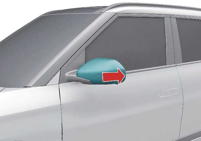 Um den Außenspiegel anzuklappen, fassen Sie das Spiegelgehäuse und klappen Sie es zur Fahrzeugrückseite hin ein.